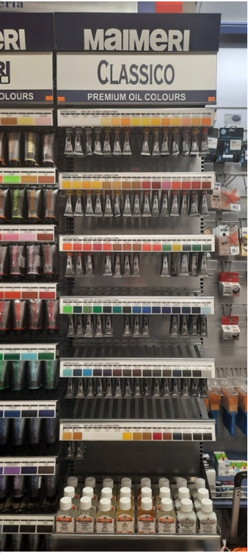 Da noi trovate una selezione di tempere, acrilici, colori ad olio, acquarelli, marker, pantoni, pennarelli e matite.
