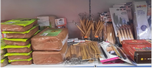 Ancora tutta una selezione di carte e album di varie dimensioni e grammature, carte in cotone e trattate, infine tutta una selezioni di plastiline e attrezzi da scultura.